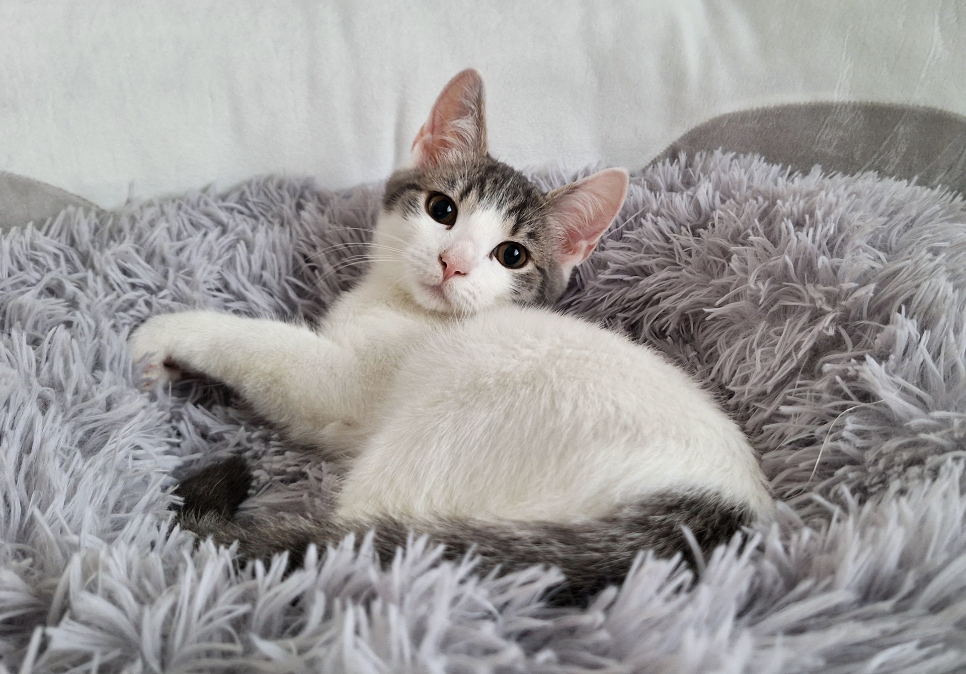 - mustavalkoinen uros, liian vähän valkoista joten ei näyttelytasoinen väri